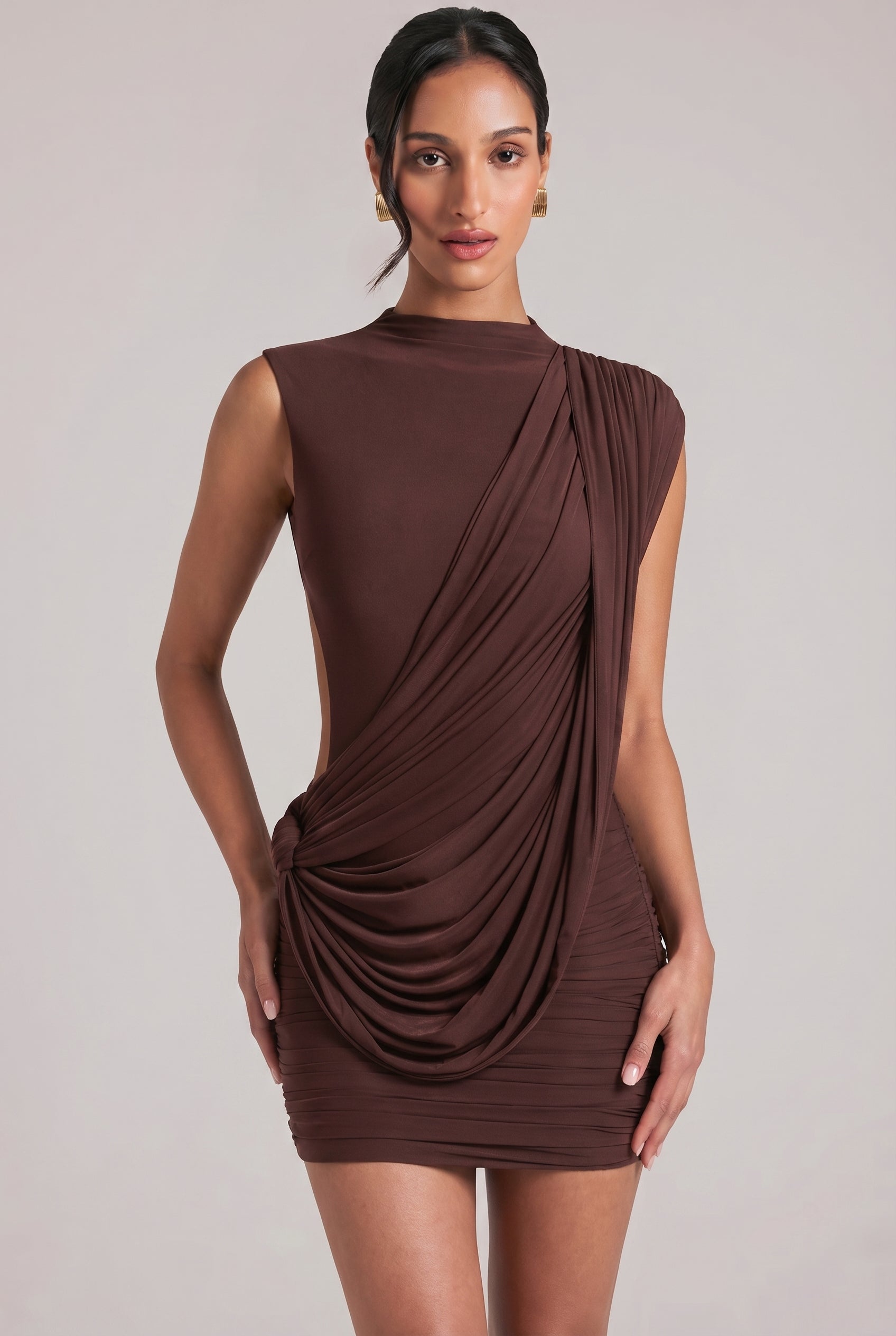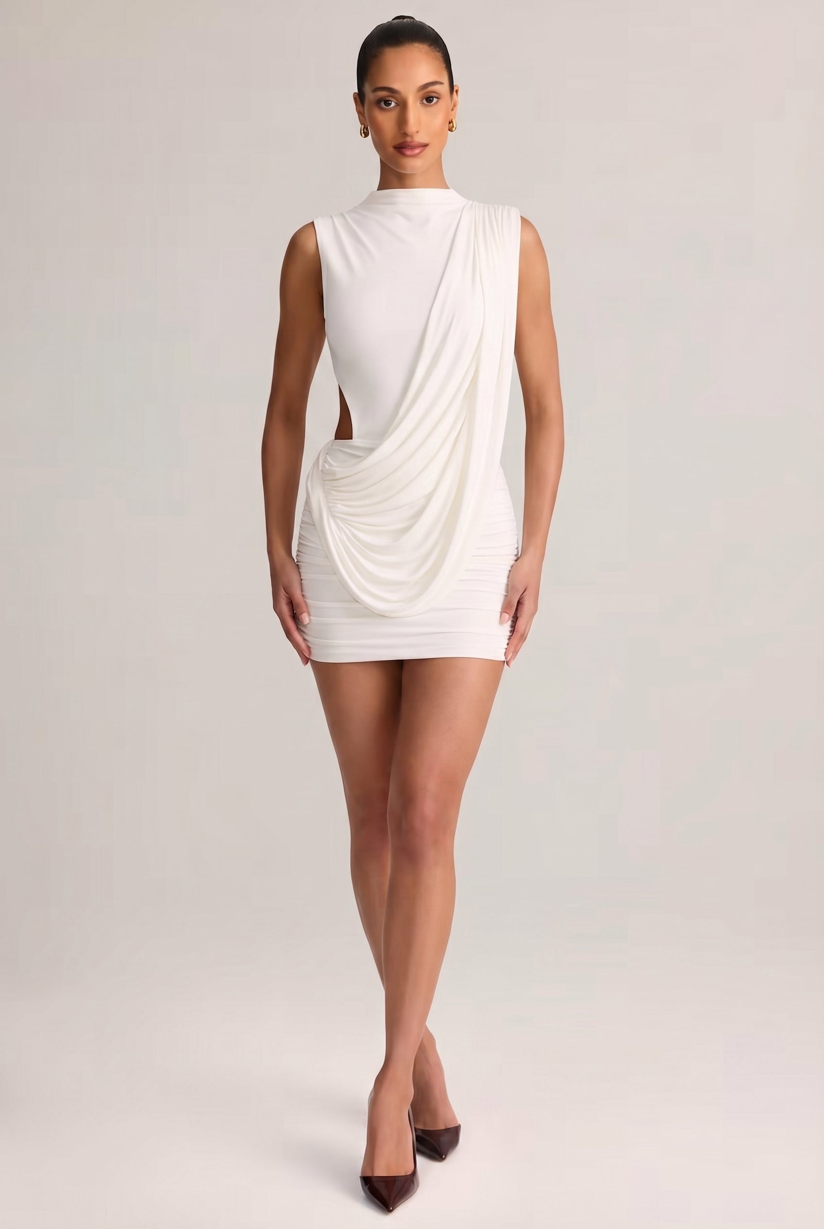 El vestido SCULPT destaca por su diseño minimalista con un drapeado lateral que define la figura de forma natural. Su corte asimétrico aporta un toque moderno, creando una silueta elegante y estilizada.